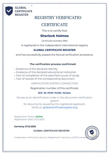 We confirm identities and certificates worldwide, ensuring facts—never evaluations—through secure, GDPR-compliant processes.